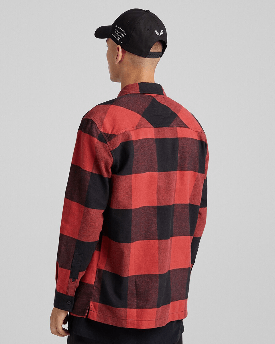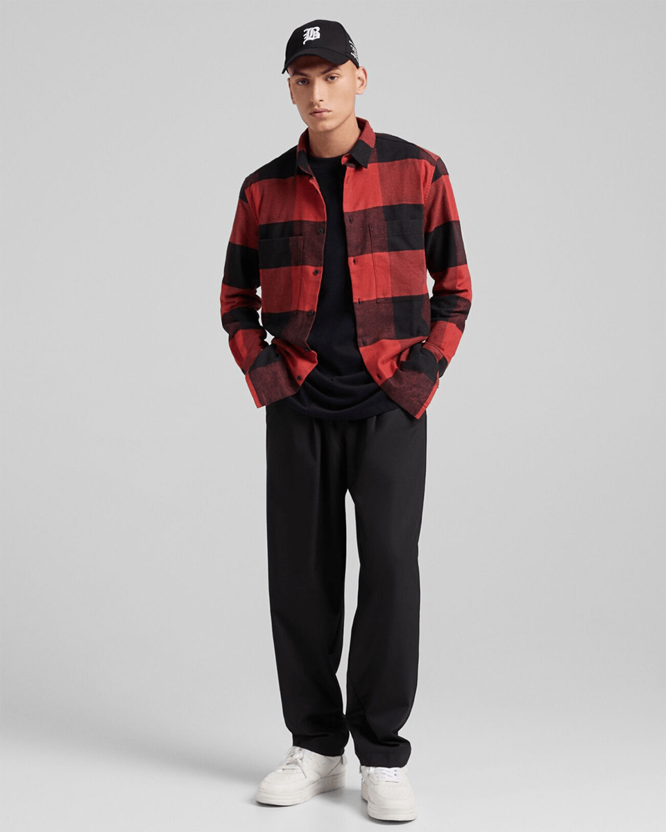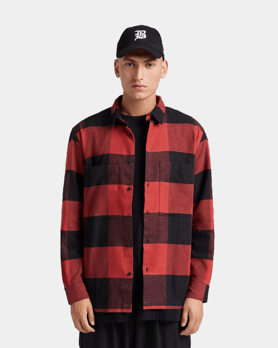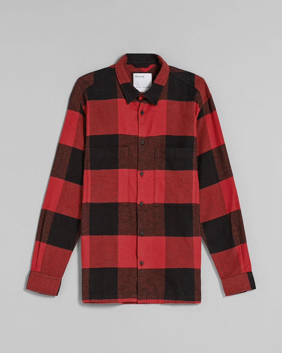 Plaid flannel overshirt with pockets