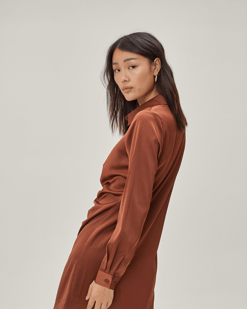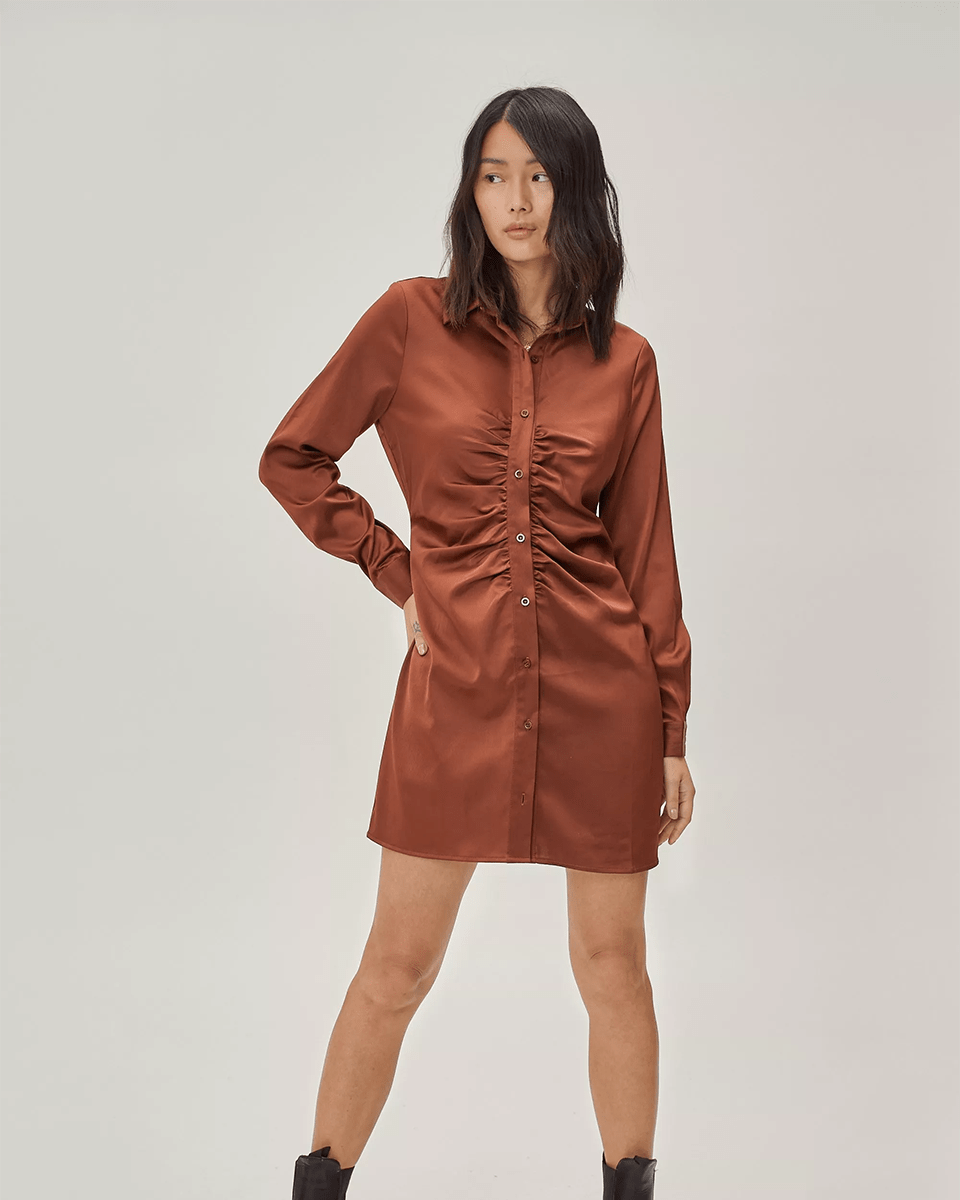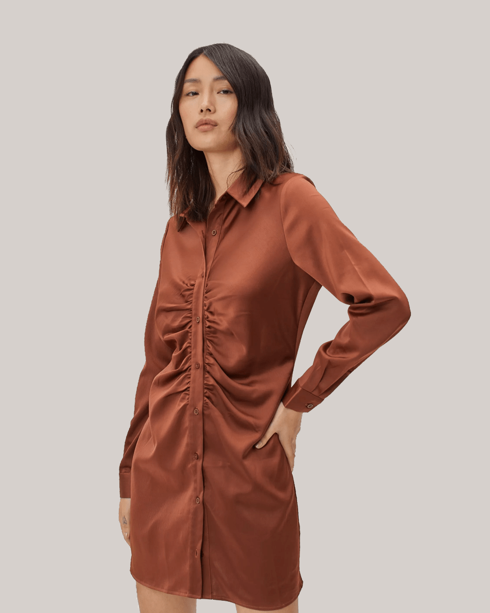 Sustainable Satin Ruched Front Shirt Mini Dress